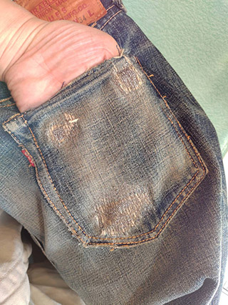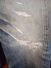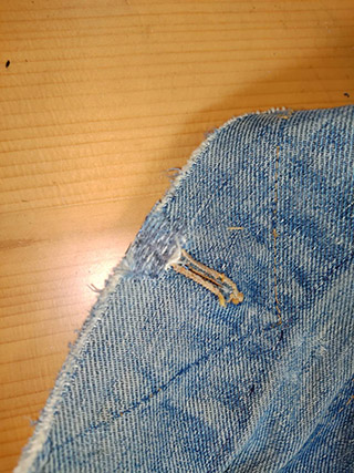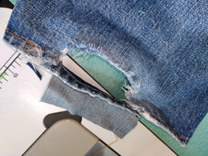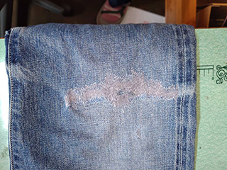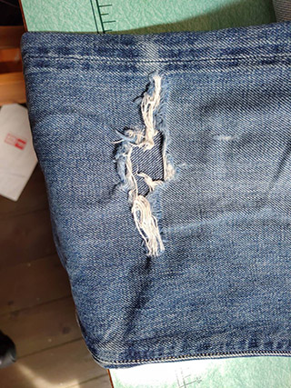 擦り切れたジーンズ箇所修復。