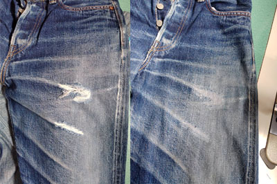 「TATAKU」では、ジーンズリペア、デニム修復、洋服デニムの染め直しをしております。